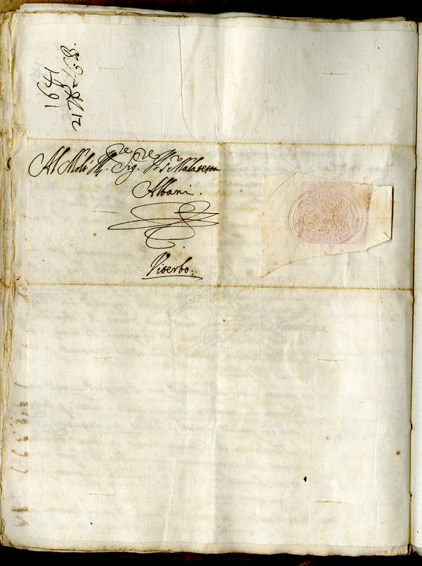 Lettera del Cardinale Barberini Francesco senior a Malatesta Albani (1641 settembre 26)
