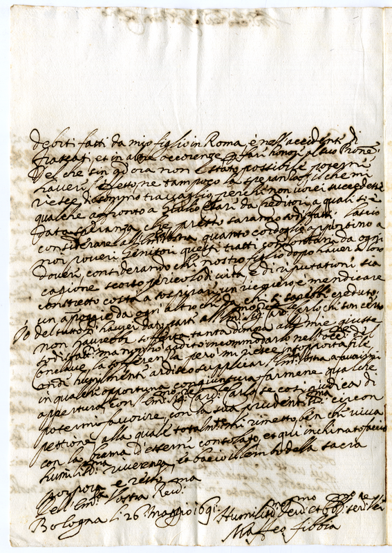 Lettera di Maffeo Fibbia ad un cardinale (1691 maggio 26)