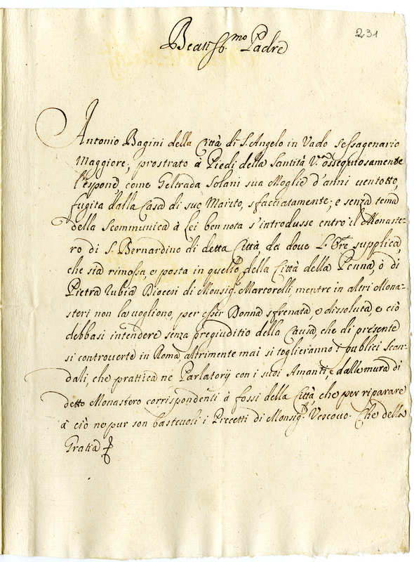 Memoriali, lettere, e suppliche di varie persone sopra diversi affari e bisogni presentate alla santa memoria di papa Clemente XI. 6
