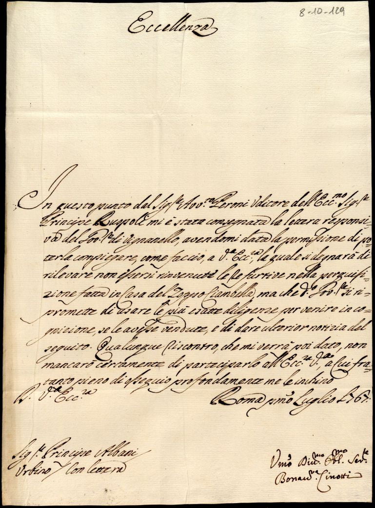 Lettere ricevute in Urbino dal Signor Principe Orazio Albani ultimo di questo nome nell'anno 1767