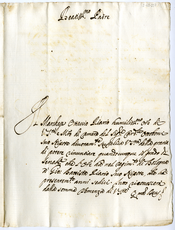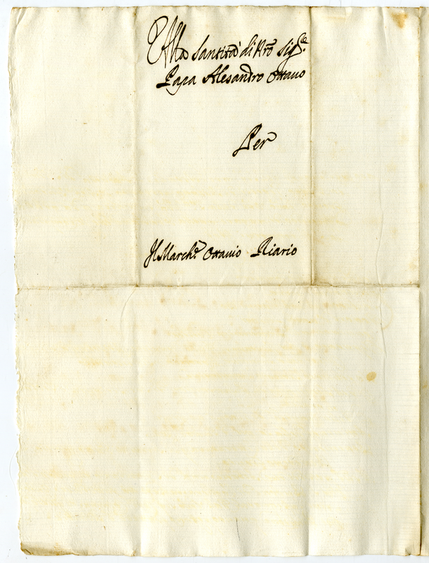 Lettera del marchese Ottavio Riario a papa Alessandro VIII (1689-1691)