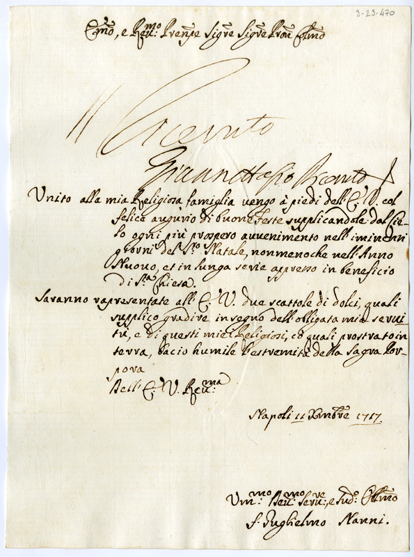 Lettera di fra Guglielmo Nanni al cardinale Annibale Albani (1717 dicembre 1)