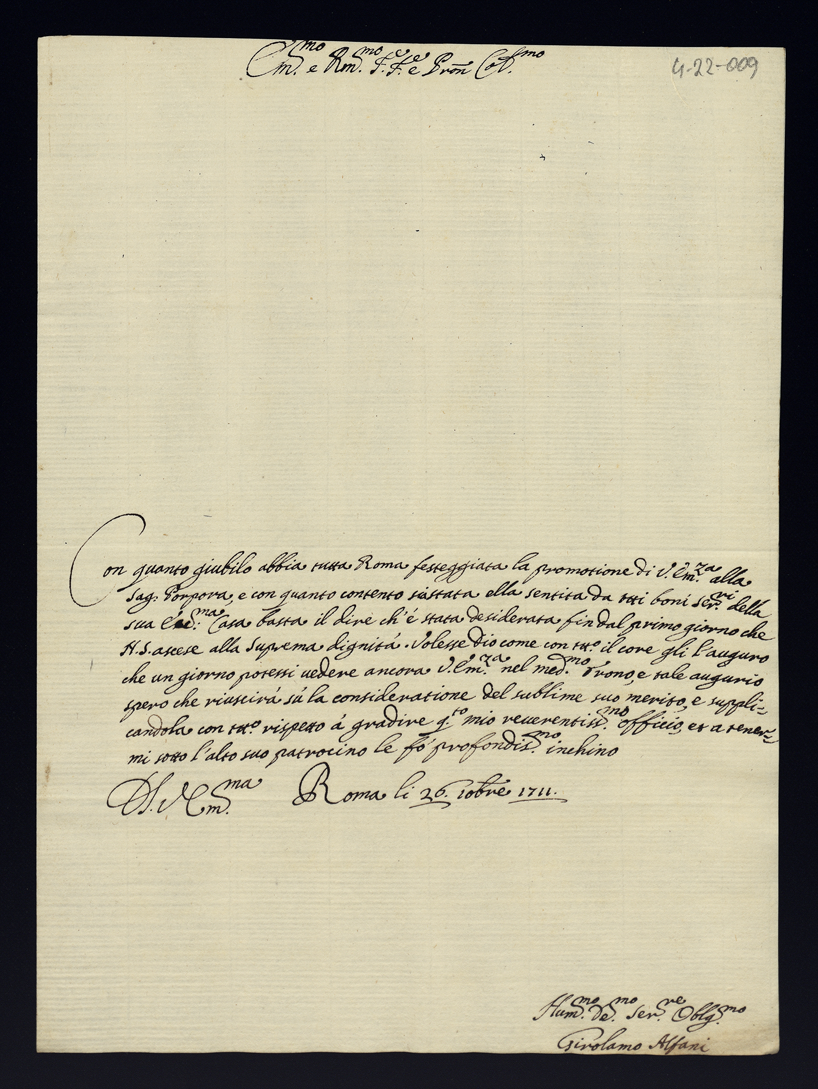 Lettere di congratulazioni per la promozione di Sua Eccellenza al Cardinalato
