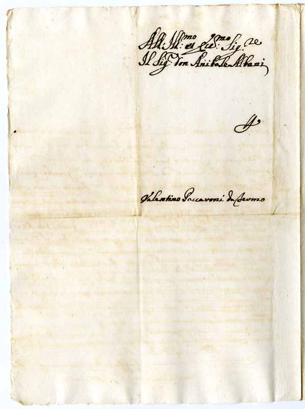 Lettera di Valentino Paccaroni ad Annibale Albani (1700-1711)