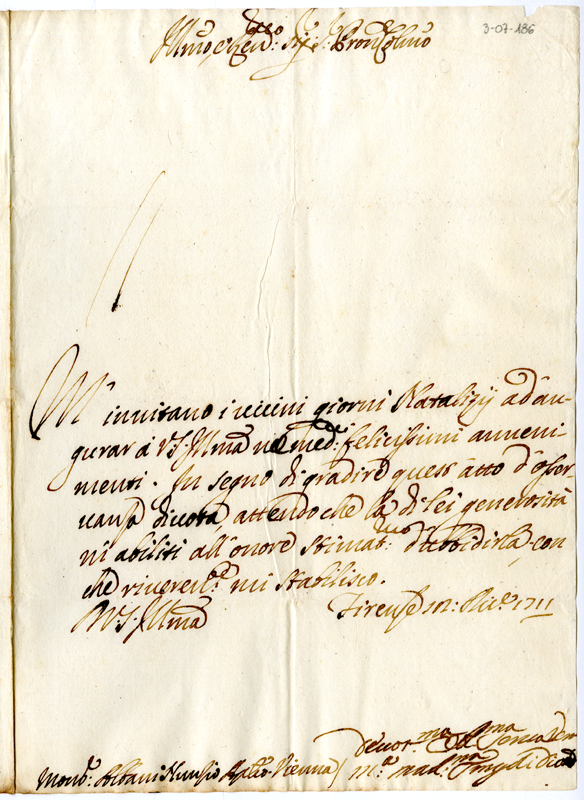 Lettera di Maria Maddalena Tingoli Diotallevi ad Annibale Albani (1711 dicembre 18)