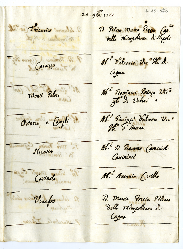 Assegnazioni delle chiese vacanti del regno di Napoli (1717 novembre 20)
