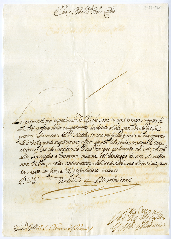 Lettera del vescovo di Calcedonia al cardinale Annibale Albani (1723 dicembre 4)