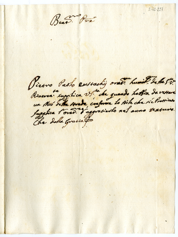 Lettera di Pietro Paolo Eustachii a papa Clemente XI (1700-1721)