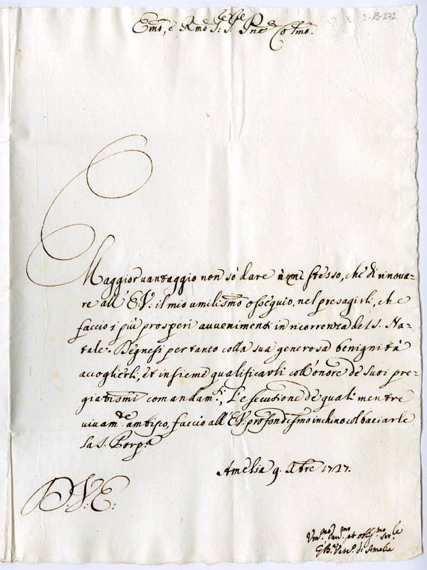 Lettera di Giovanni Battista vescovo di Amelia al cardinale Annibale Albani (1727 dicembre 9)