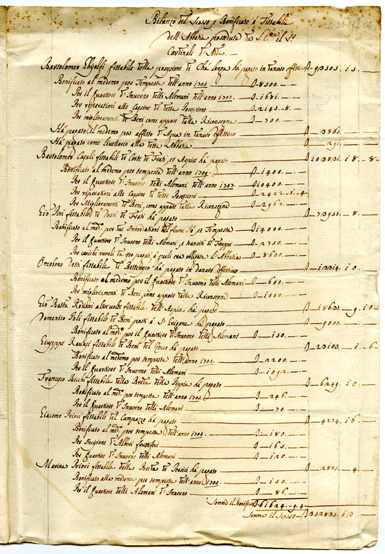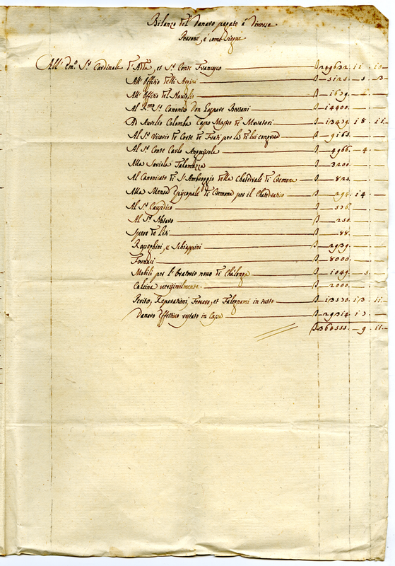 Bilanzo del danaro pagato a diverse persone, è come siegue (1700-1719)