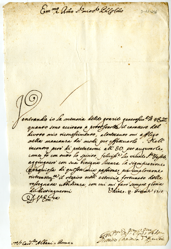 Lettera di Dionisio patriarca di Aquileia al cardinale Annibale Albani (1715 dicembre 4)