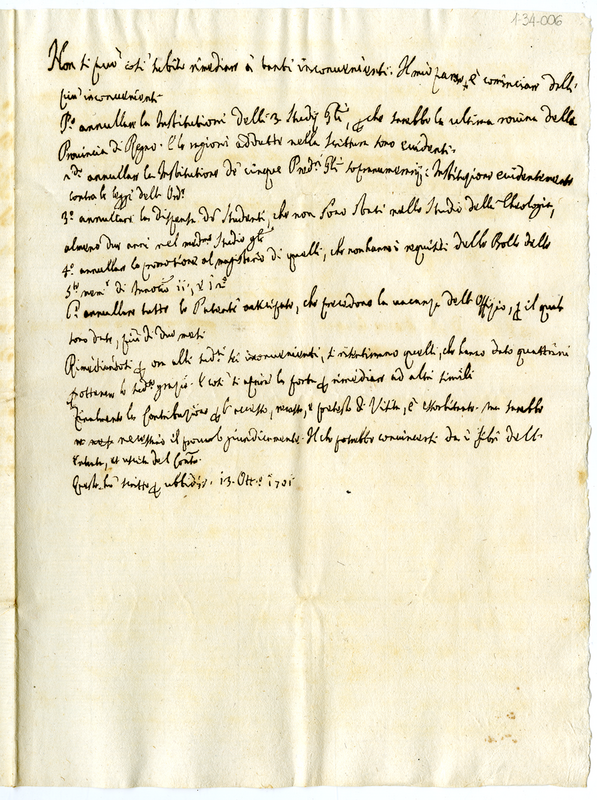 Disposizioni varie "per rimediare a tanti inconvenienti" (1701 ottobre 13)