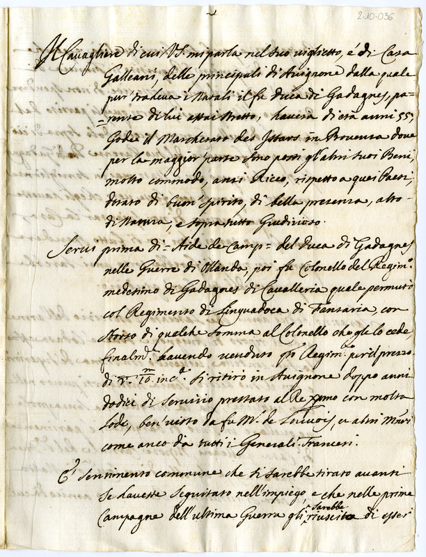 Requisiti del Cavaliere di casa Galleani per un incarico (1700-1721)