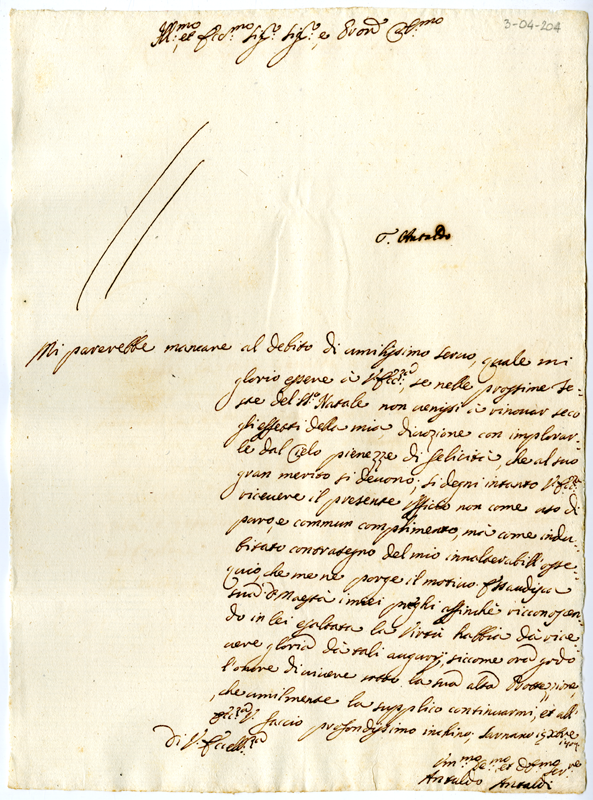 Lettera di Antaldo Antaldi ad Annibale Albani (1707 dicembre 15)