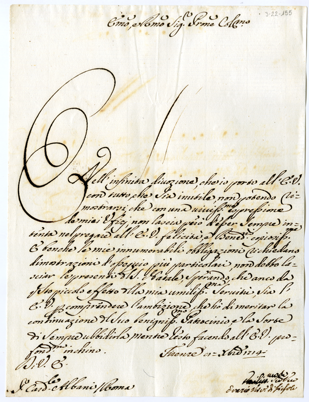 Lettera di Orazio vescovo di Fiesole al cardinale Annibale Albani (1714 dicembre 8)