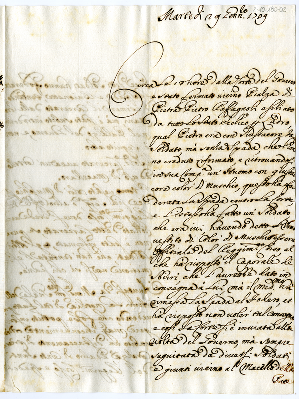 Sulla cattura di Pietro Raffagnoli (1709 gennaio 29)