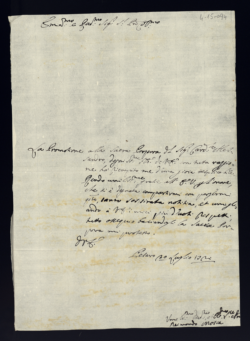 Lettere di congratulazione per l'esaltazione alla Porpora dell'eminentissimo cardinale Alessandro Albani