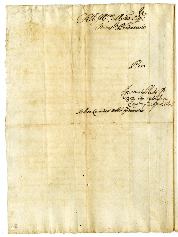 Lettera di Andrea Lucardesi all'Illustrissimo e Reverendissimo Signor Monsignor Prodatario (1689)