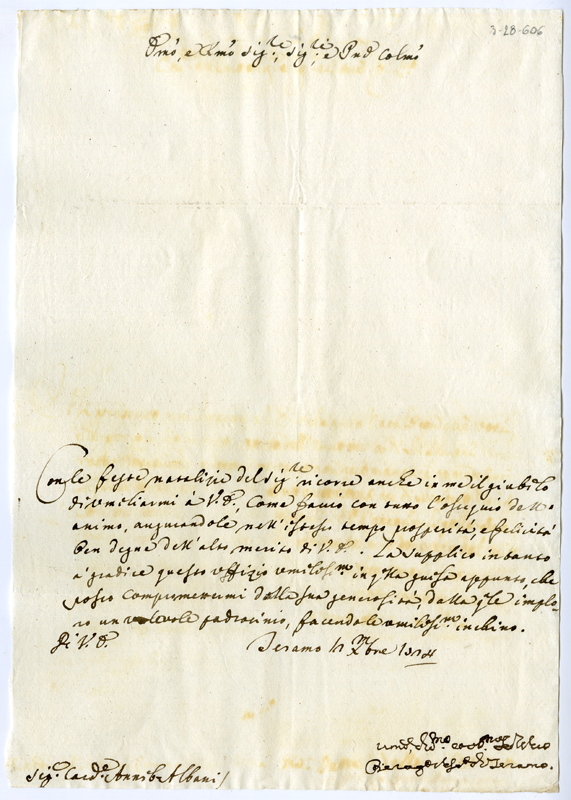 Lettera di Pieragostino vescovo di Teramo al cardinale Annibale Albani (1724 dicembre 12)