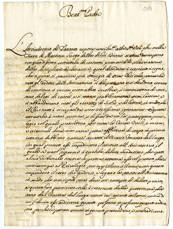 Memoriali, lettere, e suppliche di varie persone sopra diversi affari e bisogni presentate alla santa memoria di papa Clemente XI. 6