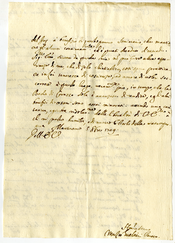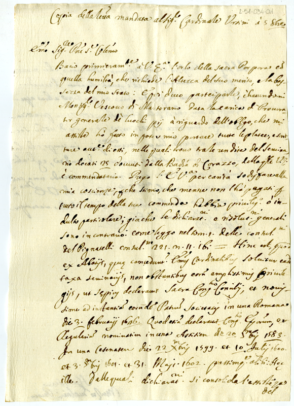 Copia di lettera mandata al cardinale Orsini da Muzio Gualtieri (1709 ottobre 5)