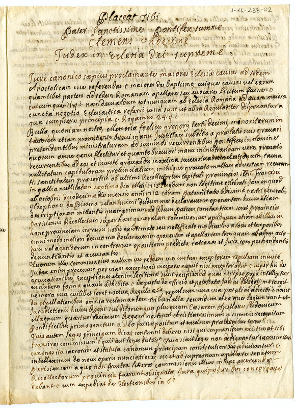 Appellazione al pontefice per una irregolarità nella celebrazione del capitolo della congregazione di San Francesco in Gallia