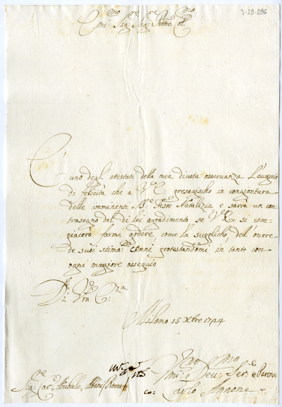 Lettera di Carlo Annone al cardinale Annibale Albani (1724 dicembre 15)