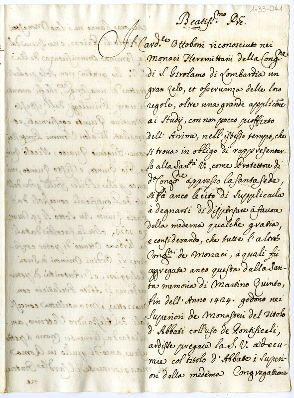 Lettera a papa Clemente XI dei padri della Congregazione di San Girolamo di Lombardia