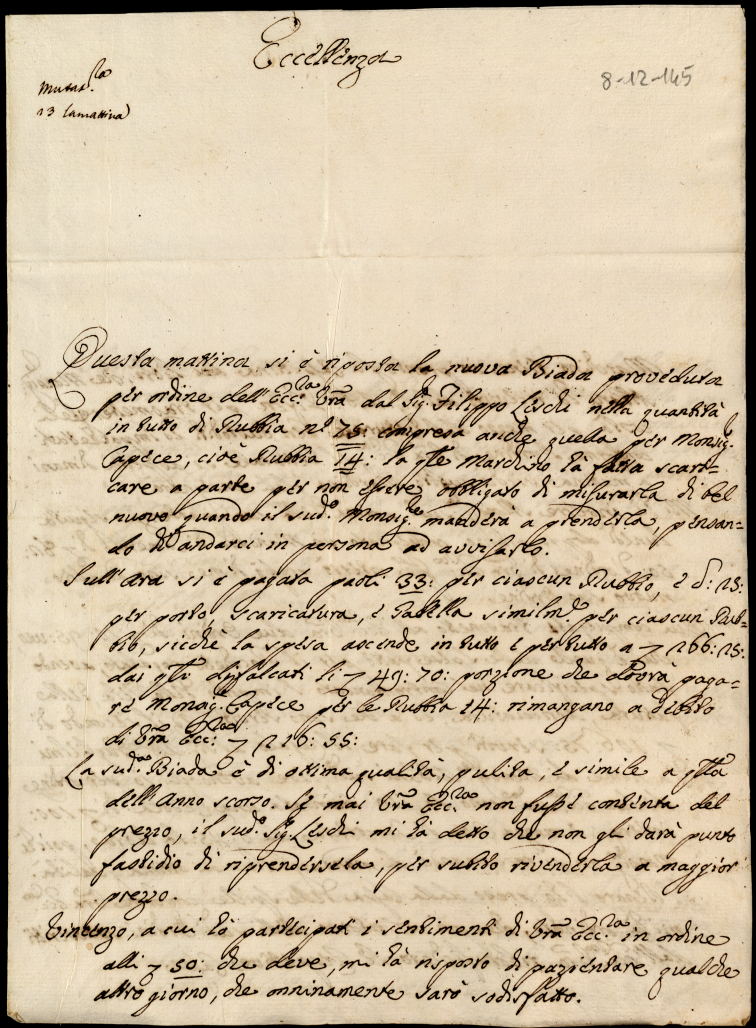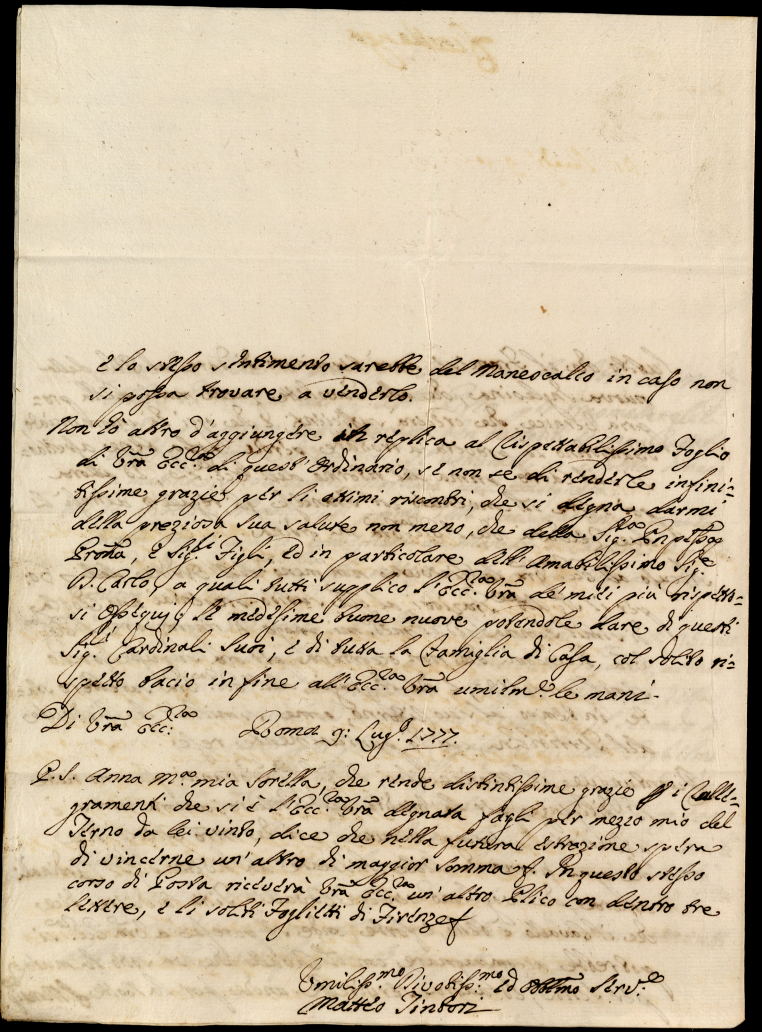 Lettere ricevute in Urbino nella permanenza in Urbino nei mesi di maggio, giugno e luglio 1777