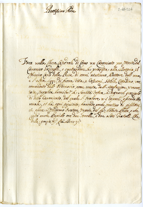 Vacando per morte del canonico Gazinelli un canonicato nella cattedrale di Como, chiede al pontefice di esserne beneficiato