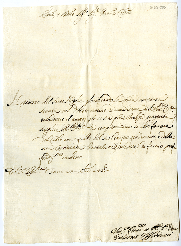Lettera di Galeotto Uffreducci al cardinale Annibale Albani (1728 dicembre 13)