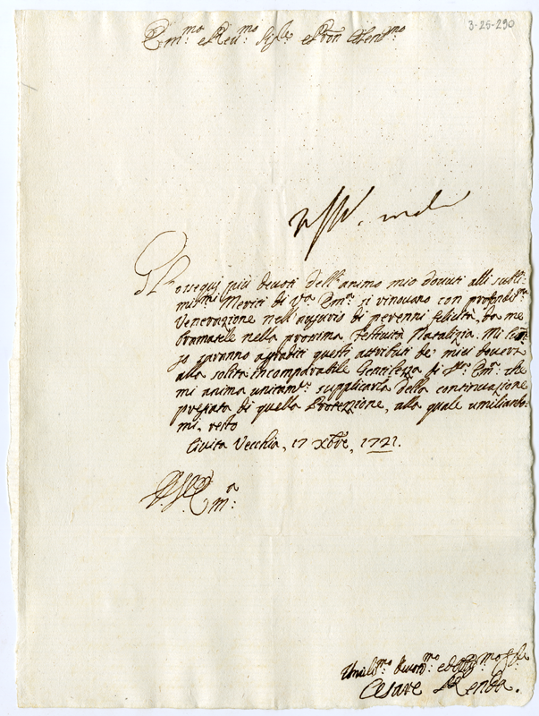 Lettera di Cesare Renda al cardinale Annibale Albani (1721 dicembre 17)