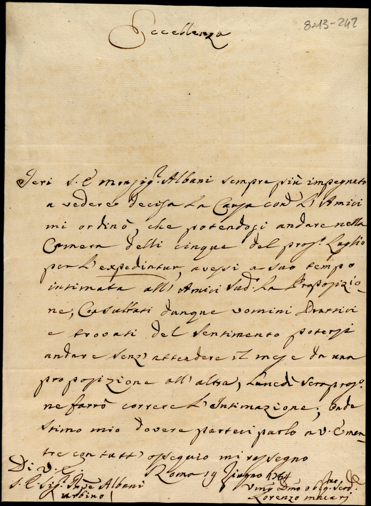 Lettere diverse ricevute in Colbordolo, Pesaro e Senigallia nel 1784