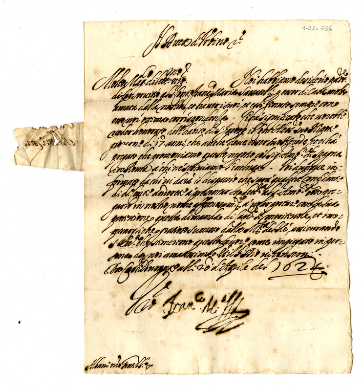 Lettera di Francesco Maria II duca di Urbino a Orazio Albani (1624 aprile 20)