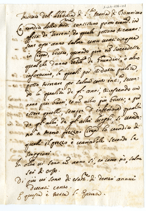 Rendita e pesi dell'Abbazia di Santa Maria di Bominaco (1700)