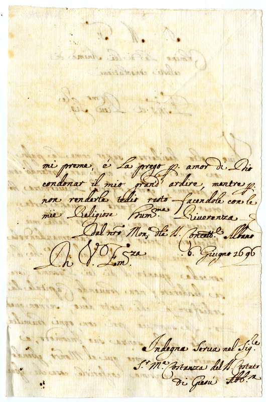 Lettera di suor Maria Costanza del Santissimo Costato di Gesù ad un cardinale (1696 giugno 6)