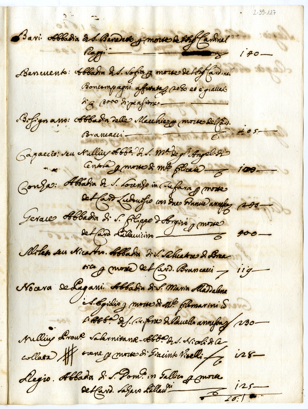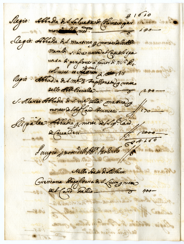 Abbadie e pensioni sotto li 5 ottobre 1690