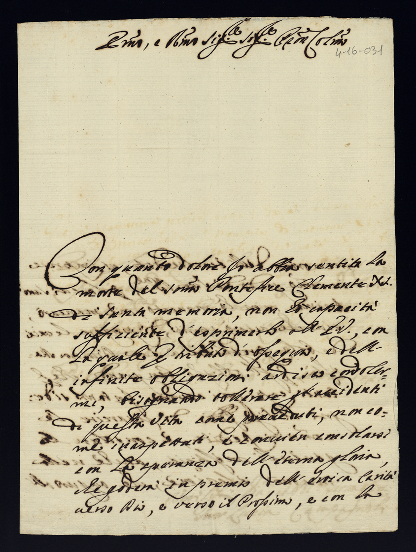 Lettere di condoglianza per la morte di Papa Clemente XI di gloriosa memoria