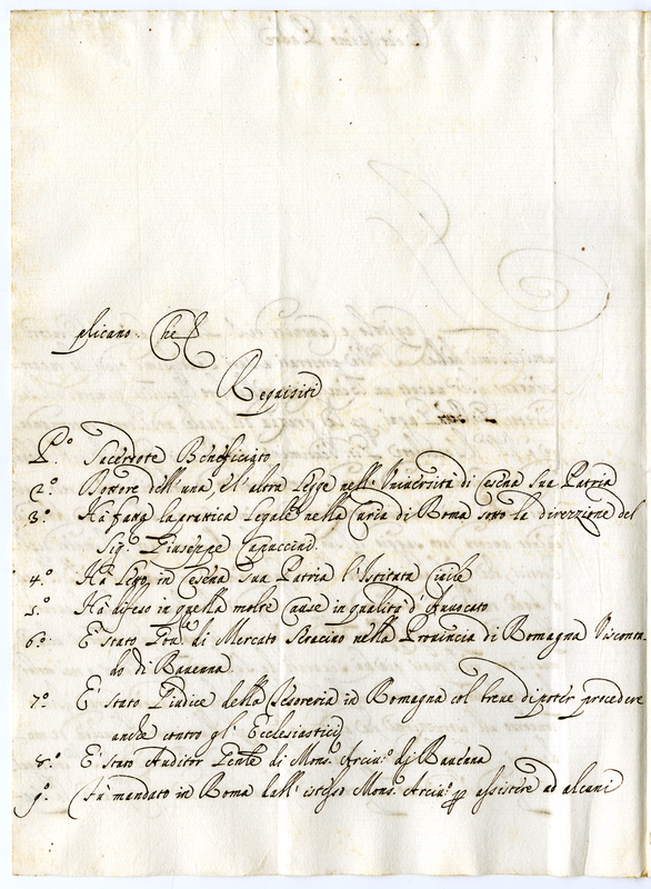 | dc.description | Supplica a favore del sacerdote Giovanni Vendimini, suoi requisiti | |