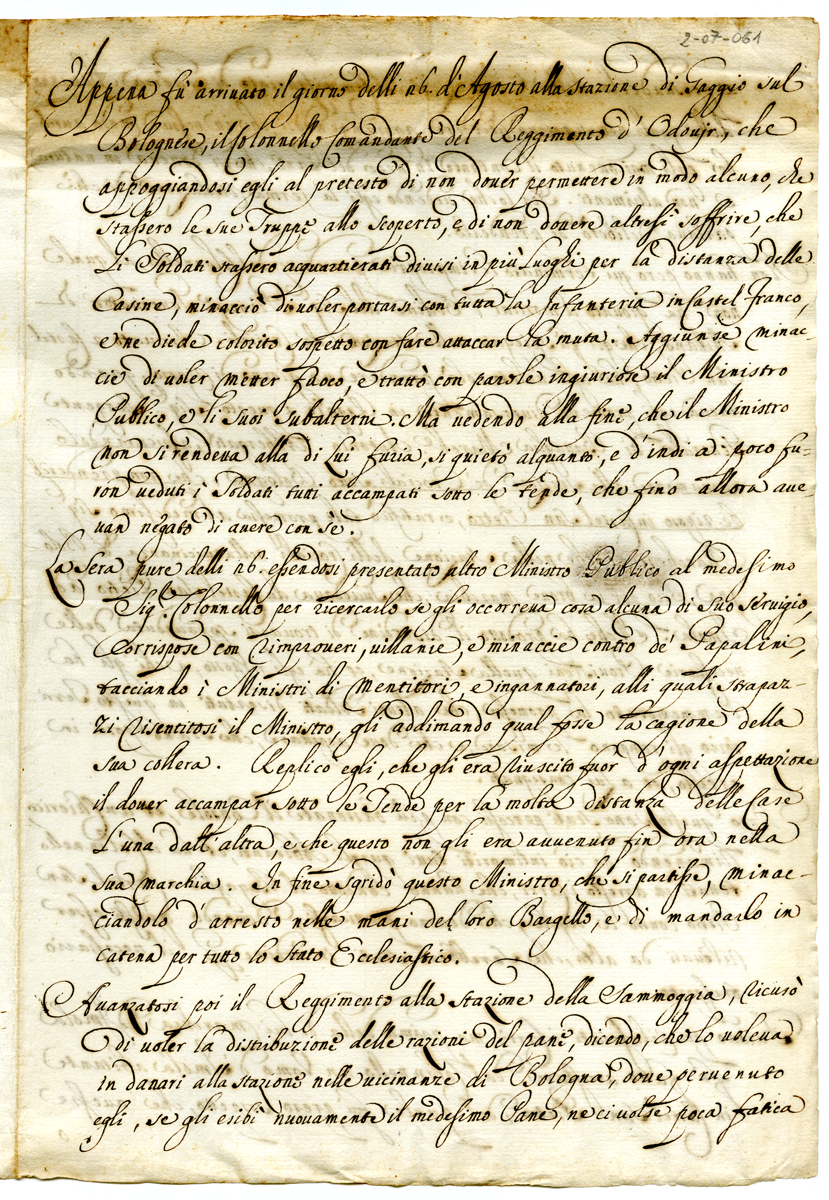 Sull'arrivo e sugli spostamenti del reggimento d'Odojr nel bolognese. Contrasto del suo colonnello comandante con i responsabili pontifici (1712-1721)