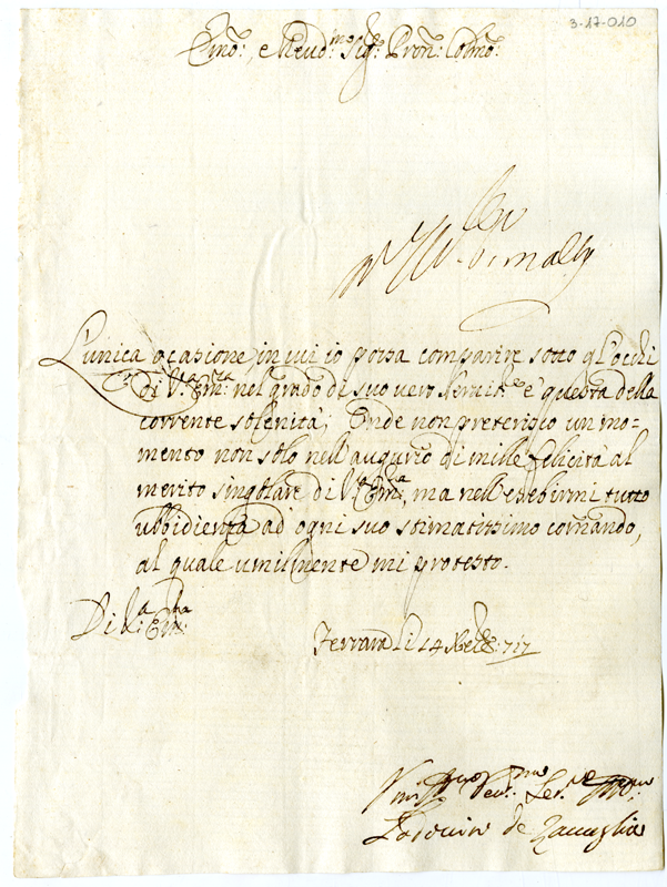 Lettera di Lodovico de Zavaglia al cardinale Annibale Albani (1718 dicembre 14)