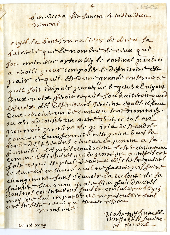 Chiede che il numero delle persone proposte per la elezione del definitorio dell'ordine sia dispari