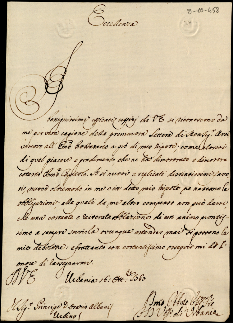 Lettere ricevute in Urbino dal Signor Principe Orazio Albani ultimo di questo nome nell'anno 1767