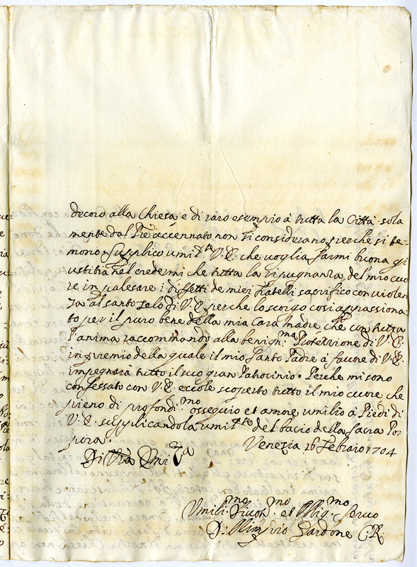 Lettera di Olimpio Gardone a un Cardinale (1704 febbraio 26)