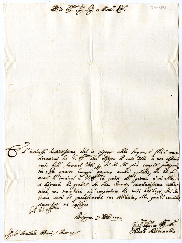 Lettera di Niccolò Aldovrandi ad Annibale Albani (1704 dicembre 17)