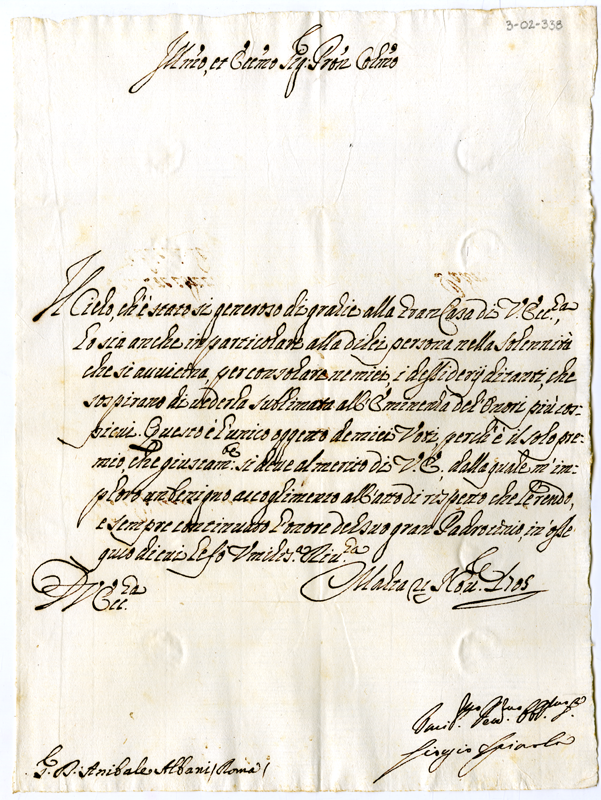 Lettera di Giorgio Spinola ad Annibale Albani (1705 novembre 21)