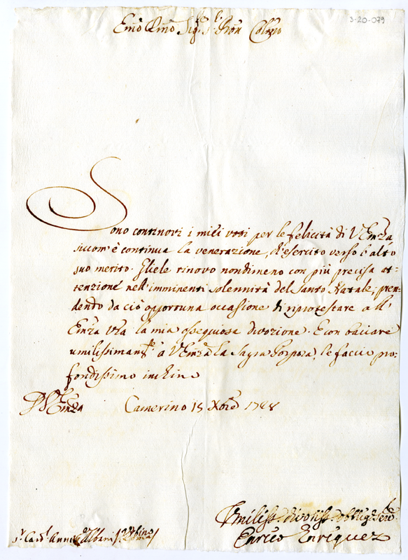Lettera di Enrico Enriquez al cardinale Annibale Albani (1728 dicembre 15)