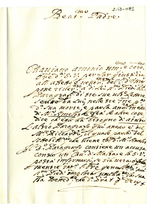 Lettera di Ottaviano Amonio a papa Clemente XI (1714)