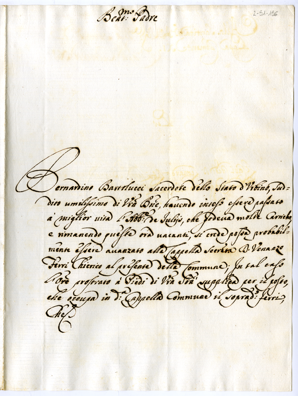 Lettera del sacerdote Bernardino Bartolucci a papa Clemente XI (1700-1721)