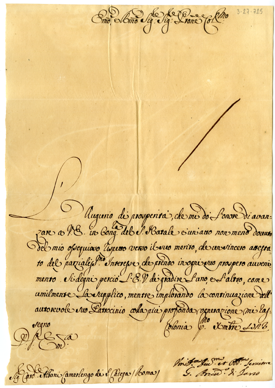 Lettera dell'arcivescovo di Tarso al cardinale Annibale Albani (1723 dicembre 1)